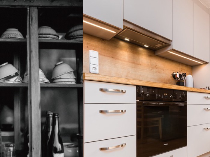不同以往的年代,無論是房子的外觀還是日常使用的家具、家電,我們發現:「時代在進步,會因為科技發達、物流便利而讓廚房有了更多的廚具、家電、餐桌椅及其他各類小物…等」。